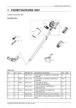 Variantes del aspiradores: VS20B75ACR5WA, VS20B75ACR5EU, VS20B75ACR5GE, VS20B75ACR5UK
