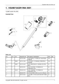 Variantes del aspiradores: VS20B75AGR1/WA, VS20B75AGR1/GE