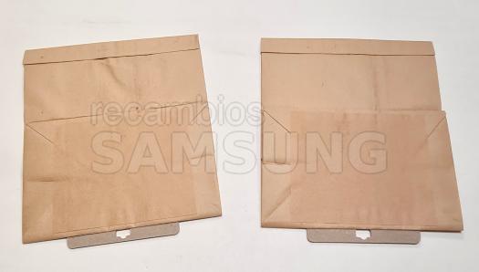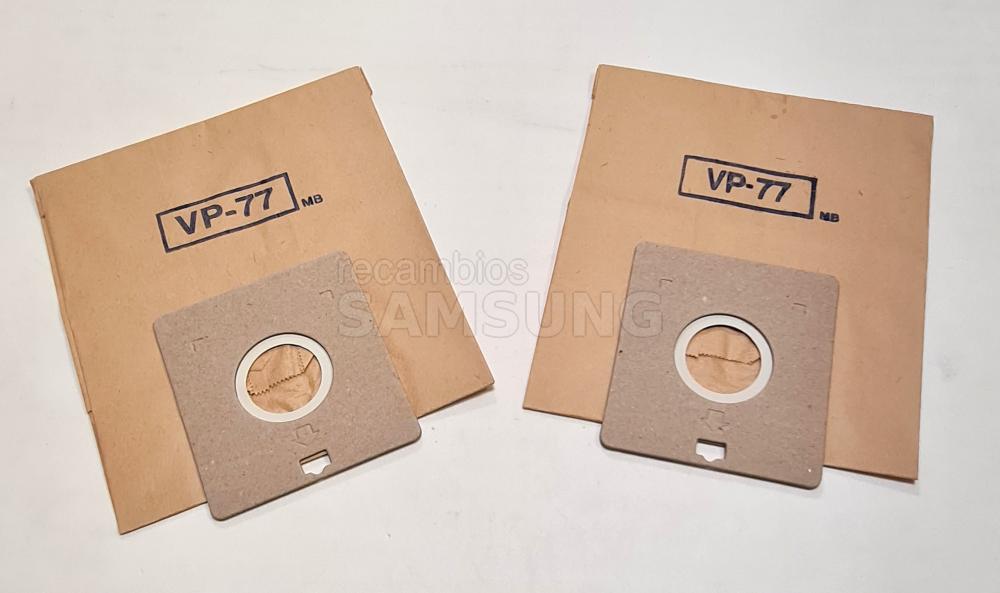 Juego de bolsas de papel originales compatibles con aspiradoras SAMSUNG de la serie SC4000 y modelo VP-77. Diseñadas para la recogida de polvo y suciedad doméstica, se instalan fácilmente en el compartimento del aspirador sustituyendo a la bolsa llena. Cada bolsa dispone de boca de conexión reforzada para un ajuste seguro al tubo de entrada del aparato.