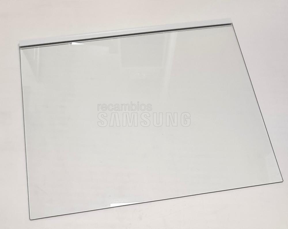 El estante de cristal es una plataforma ubicada en el interior del frigorífico, diseñada para organizar y sostener alimentos y recipientes de manera ordenada. Está hecho de cristal, lo que le brinda transparencia y permite ver fácilmente los elementos almacenados en él. El perfil de plástico, es el borde o marco que proporciona soporte y estabilidad al estante.
