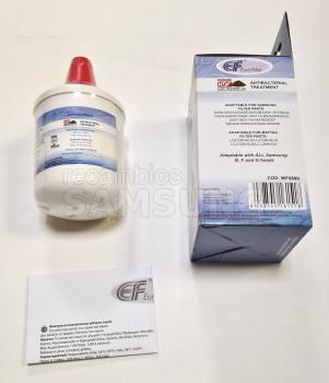El filtro de agua de un frigorífico es un componente diseñado para purificar el agua que se utiliza para suministrar el dispensador de agua y el fabricador de hielo integrados en el frigorífico. Estos filtros están compuestos por materiales porosos y carbón activado que eliminan impurezas, sedimentos, cloro y otros contaminantes presentes en el agua del suministro doméstico. Su función principal es mejorar la calidad del agua, proporcionando agua potable más limpia y de mejor sabor para el consumo directo o la fabricación de hielo. Es importante reemplazar estos filtros periódicamente para mantener la calidad del agua que se dispensa desde el frigorífico.