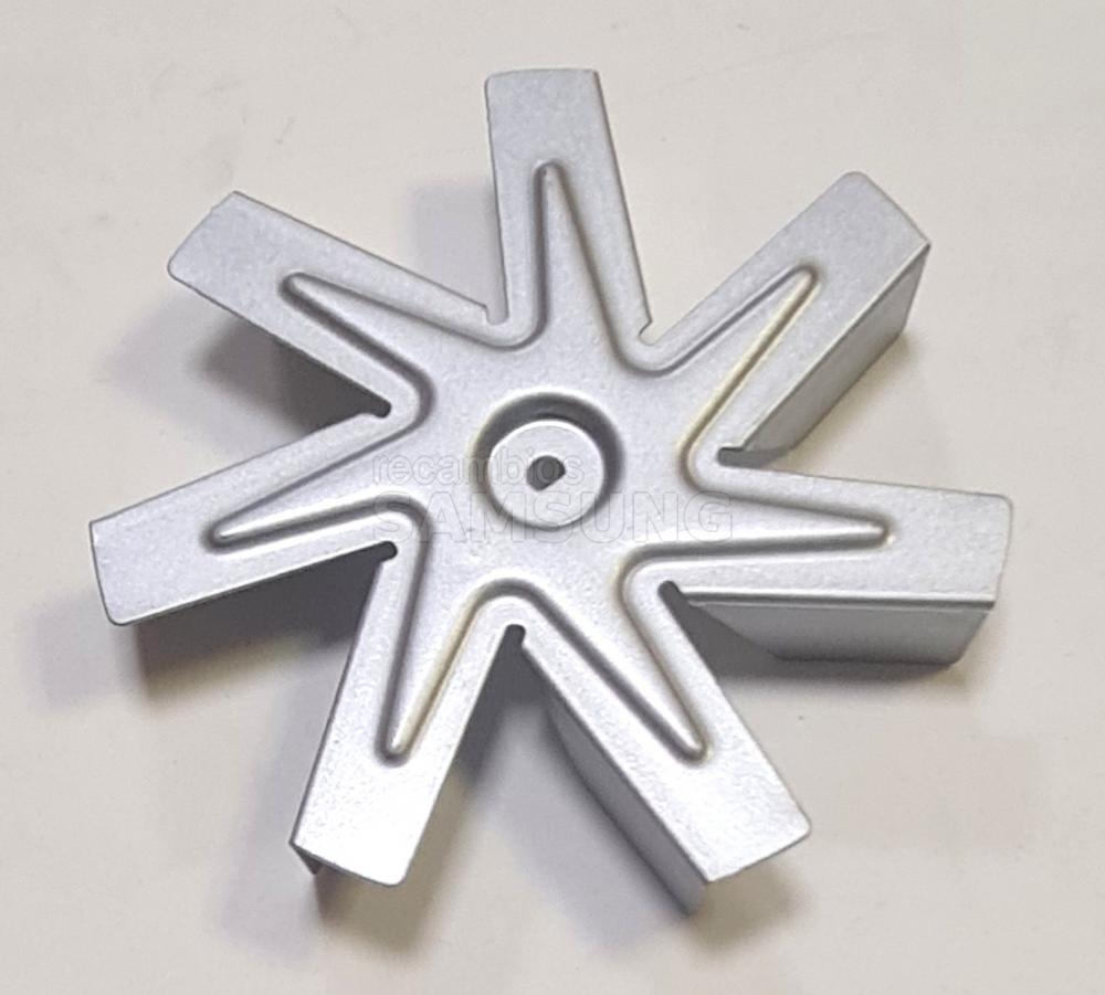 Esta está montada en el eje del motor del ventilador y está diseñada para girar rápidamente cuando el motor del ventilador está en funcionamiento.