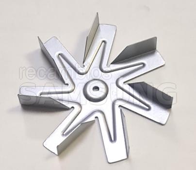 La función principal del aspa del motor del ventilador es impulsar el aire caliente generado por los elementos calefactores o el sistema de convección a través del horno. Al girar, el aspa del ventilador crea un flujo de aire dentro del horno, lo que permite una distribución más uniforme del calor alrededor de los alimentos que se están cocinando.