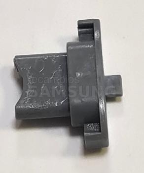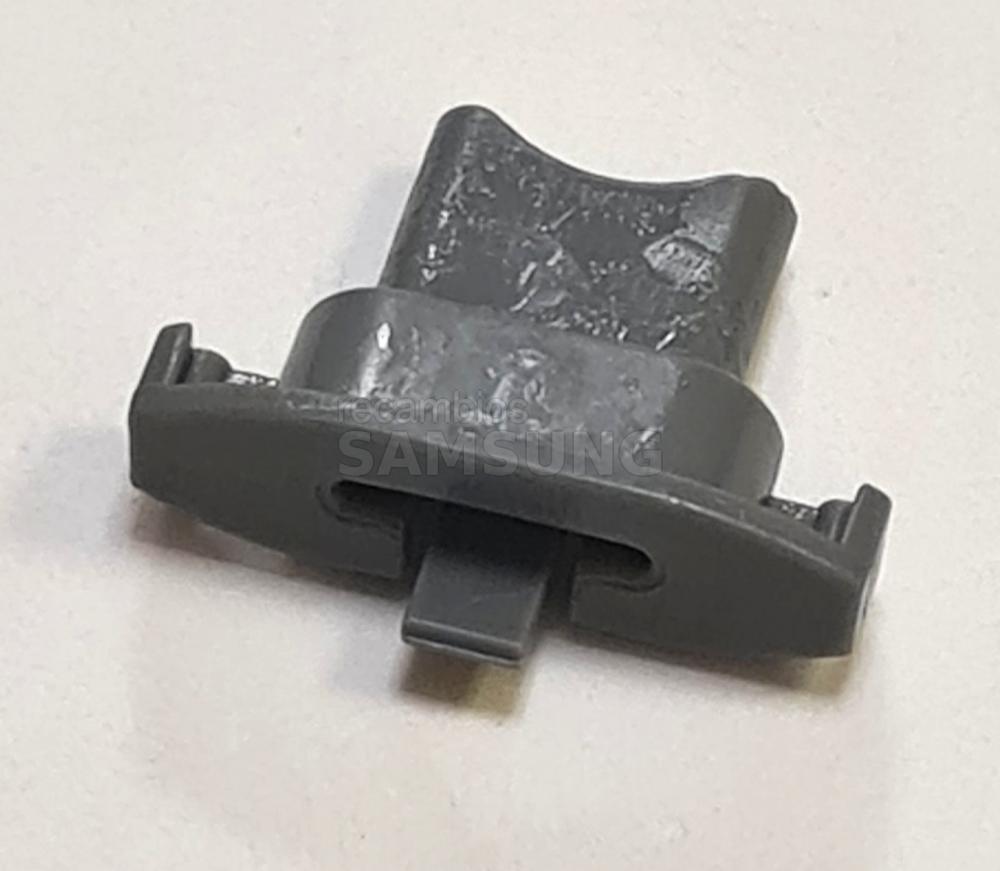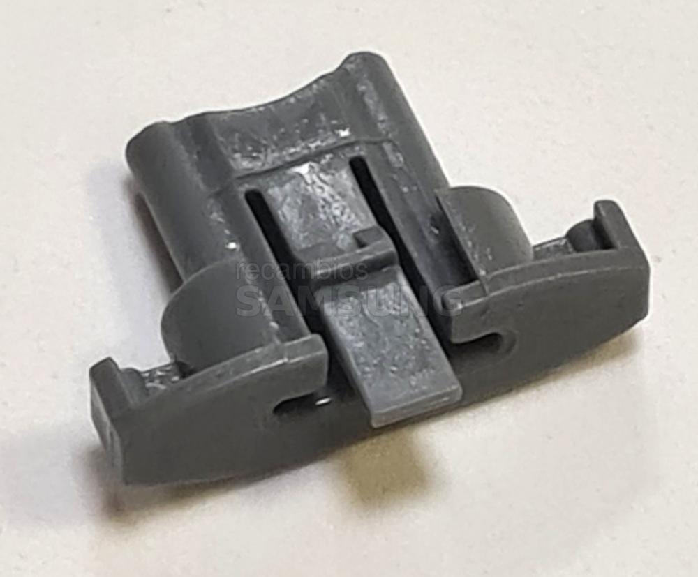 Tope de carril para la cesta del lavavajillas SAMSUNG. Pieza diseñada para fijarse en la guía de deslizamiento de la cesta, evitando que esta se salga del rail durante la apertura o el cierre. Elemento de recambio específico para sistemas de guía de cestas de lavavajillas.