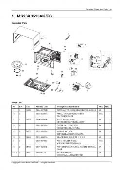 Variantes del microondas: MS23K3515AK/EF, MS23K3515AK/EG, MS23K3515AK/OL, MS23K3515AK/EC