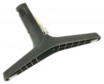 Soporte de pie izquierdo original para televisores Samsung. Se trata de una pata de soporte para TV, fabricada en plástico rígido de un solo color negro. Presenta una forma angular con base plana alargada, diseñada para asegurar la estabilidad del televisor sobre superficies horizontales. Pie específico para el lado izquierdo del aparato, se fija a la parte inferior del televisor en los puntos de anclaje previstos para ello.
